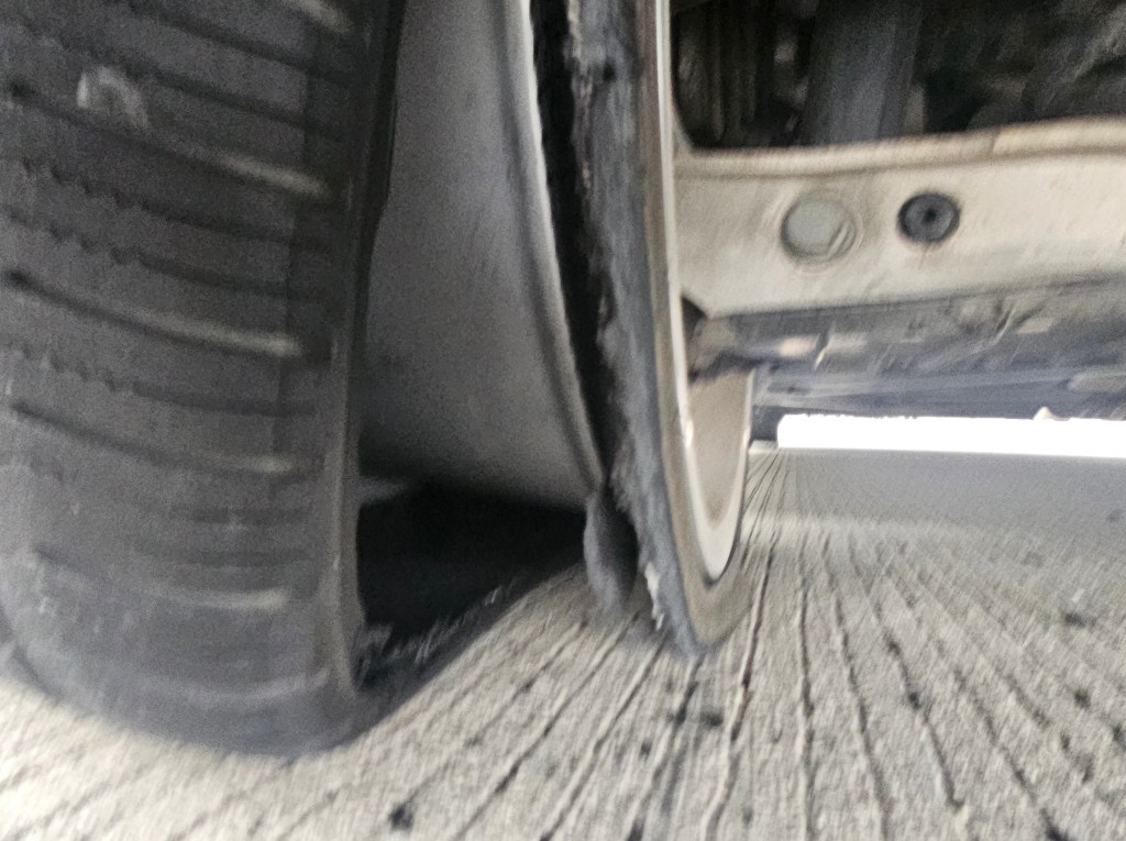 Solid State Drive- Hard Drive Destruction – Pending due to California regulations. Please enjoy this picture of my tire giving up the ghost on I-215 Southbound by the Devore exit